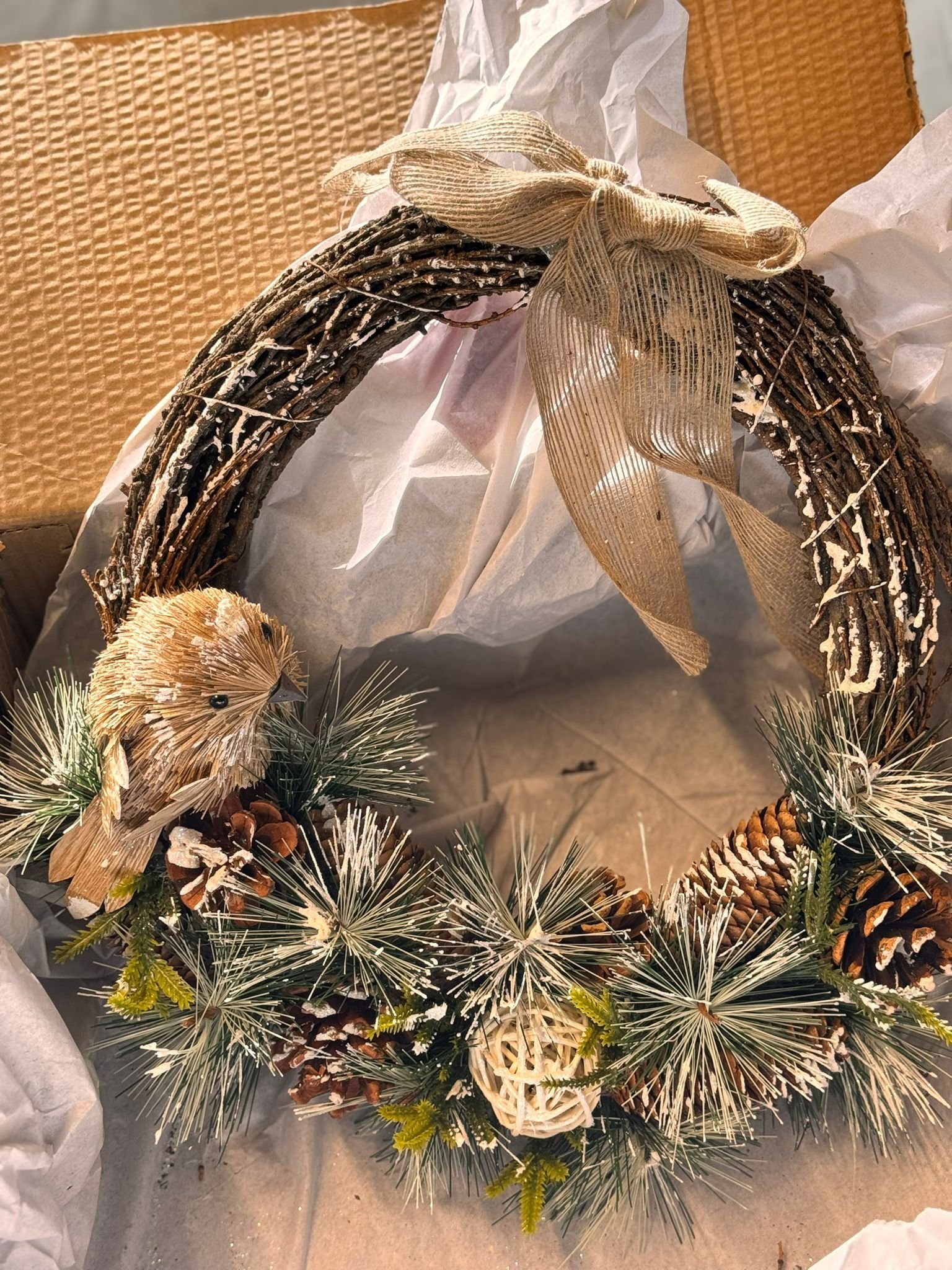 Bring the magic of the holidays into your home with our beautifully crafted Christmas wreath. Made from natural pinecones and a touch of festive sparkle.